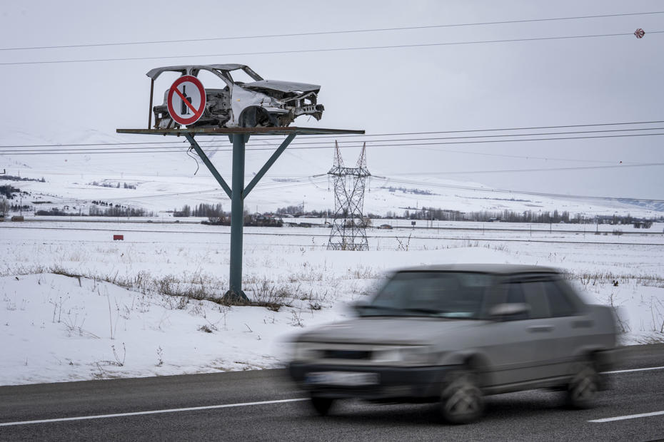 Erzurum’da trafikte kural ihlallerine dikkat çekmek amacıyla yol kenarına yerleştirilen kazalı araçlar, sürücülere bir anlık dikkatsizliğin nelere mal olabileceğini hatırlatıyor.